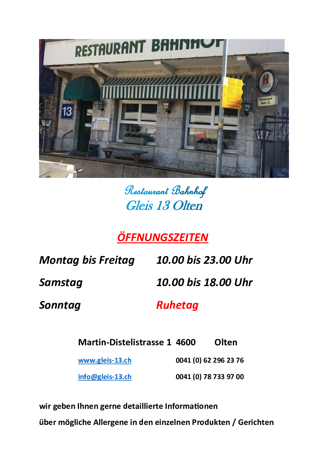 Ihr Restaurant Bahnhof Gleis 13 Team.